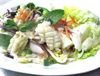 | 18. Yum Talay-Seafood Salad - Seasoned with lime, chili, green onion, cilantro, cucumber, tomatoes and lemongrass. Served on a bed of Romaine lettuce with your choice of: calamari $13.95, shrimp $15.95, combo $14.95. |