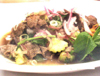 17. Yum Neau-Beef Salad - Slice beef seasoned with lime, chili, onion, cilantro, tomatoes, cucumber and lemongrass, on a bed of Romaine lettuce. $13.95